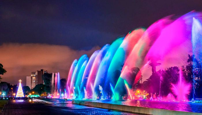 18h, experiência no Circuito Mágico das Águas, no Parque de la Reserva, com espetáculo de luzes e